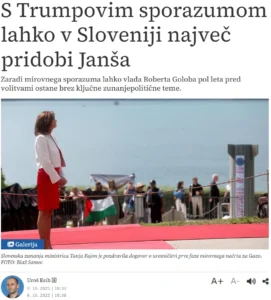 From the outset of Israeli operations in Gaza, it was clear that the current coalition would strongly rely on anti-Semitic international politics, putting significant pressure on Israel (primarily in the context of domestic political posturing), and then turn a blind eye to Hamas’ crimes. Some strategists on the left already saw this as a winning combination for the elections, as it could attract both the anti-Semitic far left and the anti-Semitic far right – an important part of the electorate. Then Trump thwarted their plans with the peace agreement. Now, one of the Slovenian regime’s official mouthpieces has directly admitted that Gaza is the left’s trump card, which it is losing with President Trump’s peace deal.